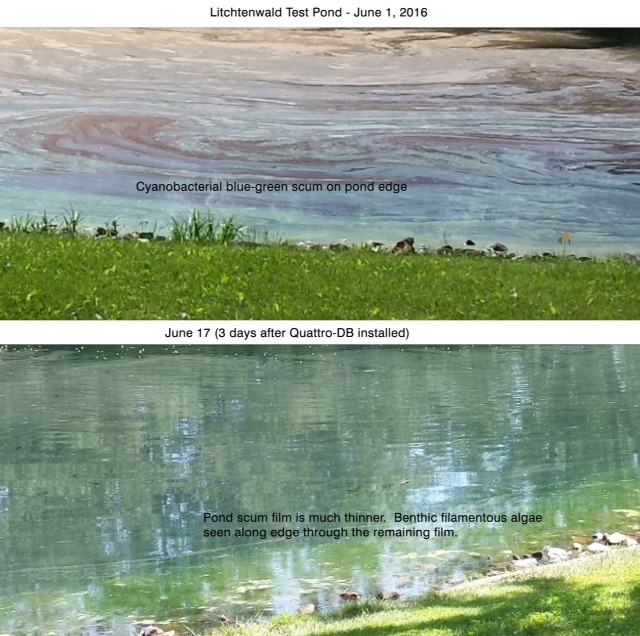 Picture no 3 is taken September 6 and shows the way ALPHA is breaking down the algae into smaller clumps.