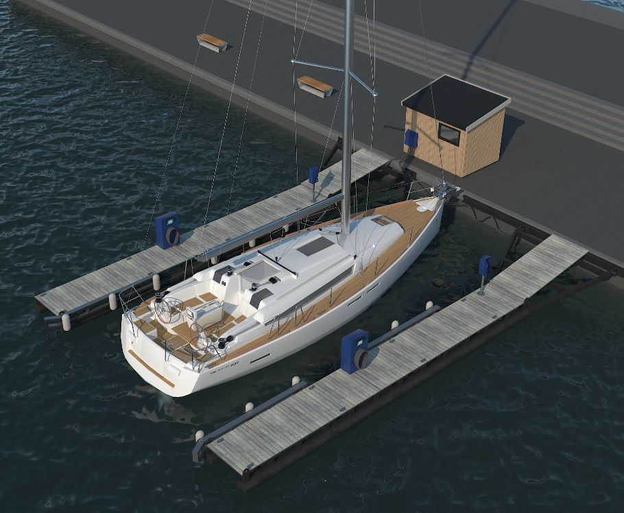 The NEW DB-GLOBE ultrasonic transducer will be suspended below the jetty,