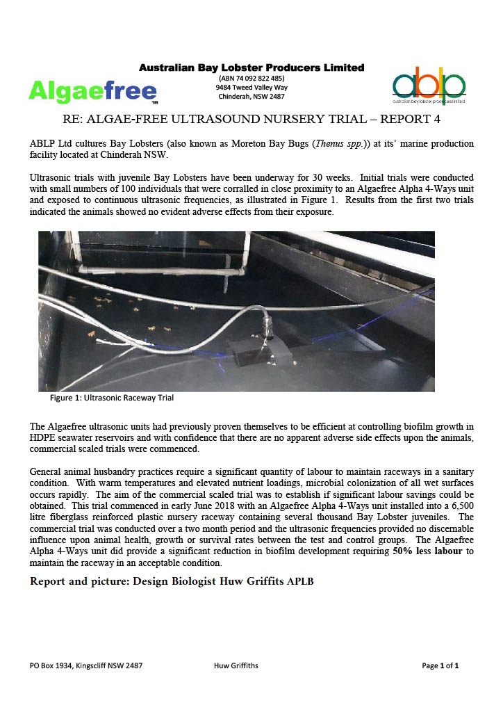 We’ve seen strong results from a recent trial using the ALGAEFREE model ALPHA 2-ways  ALGAEFREE  Ultrasound