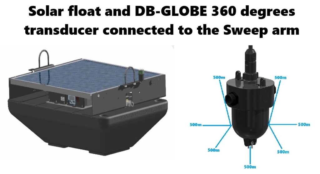 ALPHA DB-360 degrees transducer hanging below the SolaRaft float, is the premium system to prevent algae, bio film, bacteria’s and other growths